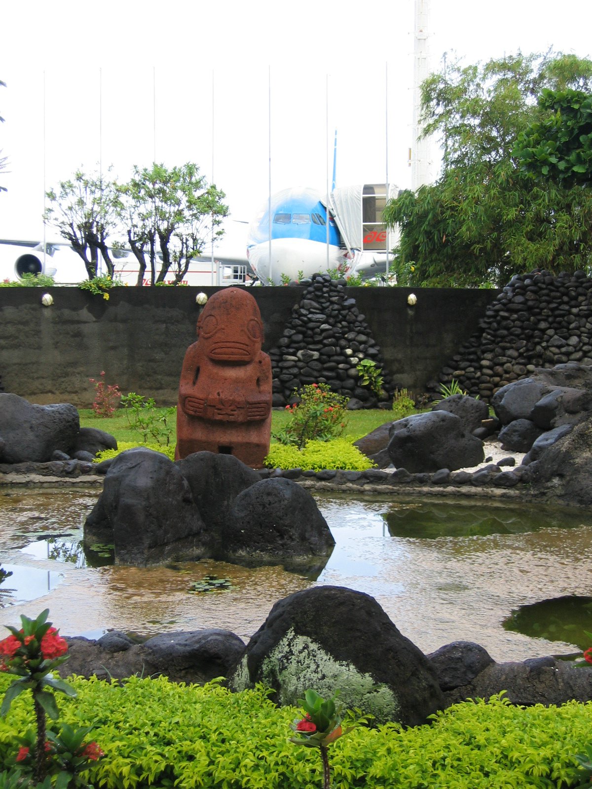A nice, peaceful garden at the Tahiti airport.