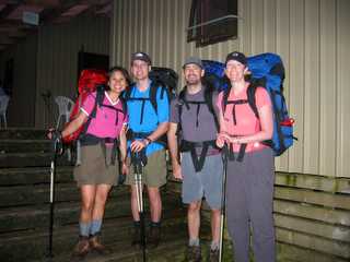 Outside the third night's hut, an early start to beat the rain!